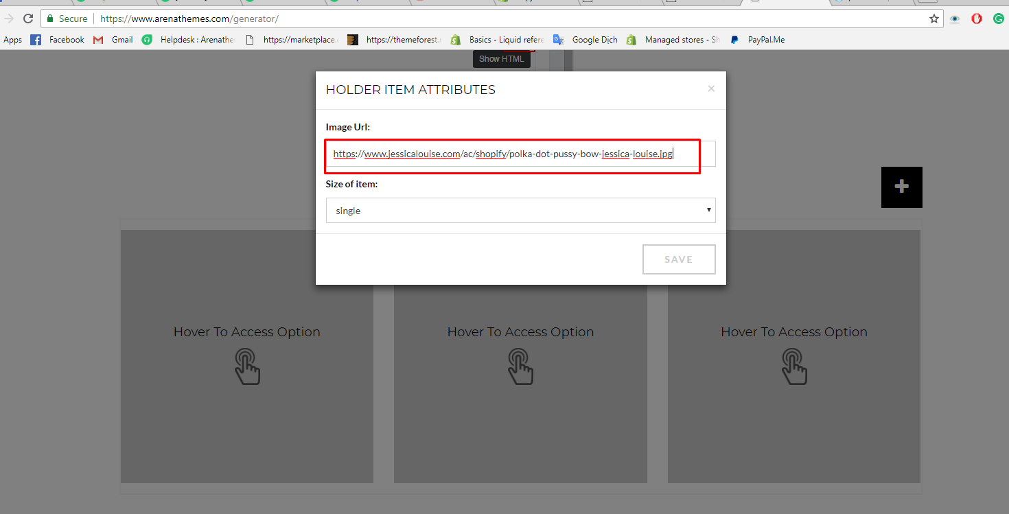 - After getting shortcode, go to Shopify admin page. Create in theme new page, select SHOW HTML and paste the code.