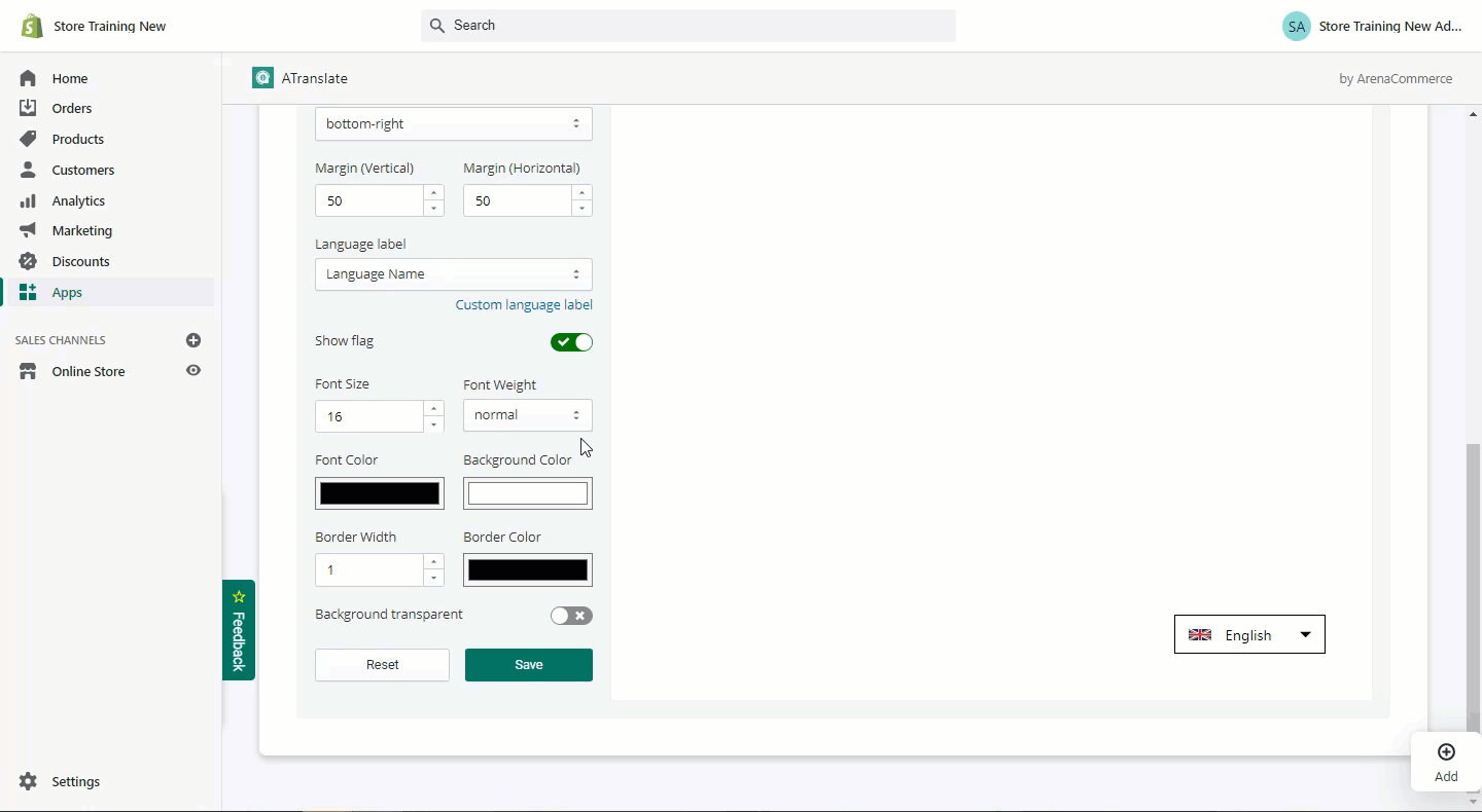 - Browser language detection option: It will catch the users' browser language and show on the box. If it is turned off, the store default language will be showed.