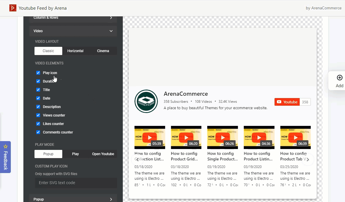 Note: If your current layout is Cinema, some elements will not appear on the feed.