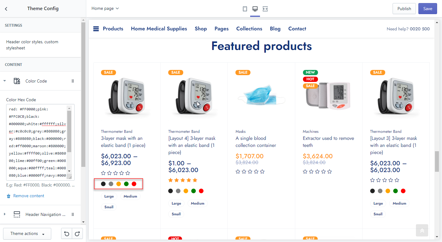 Used for adding color hex code of the color variation swatches. Each value is separated by a semicolon.