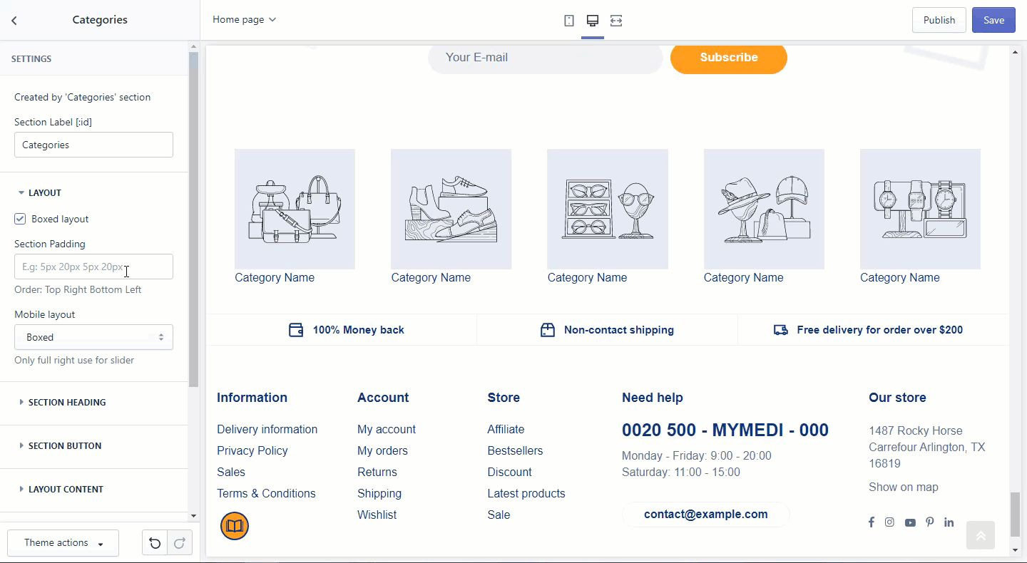 - Section padding: Insert values in order of clockwise motion starting from Top padding.