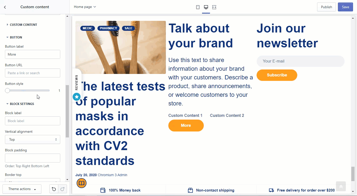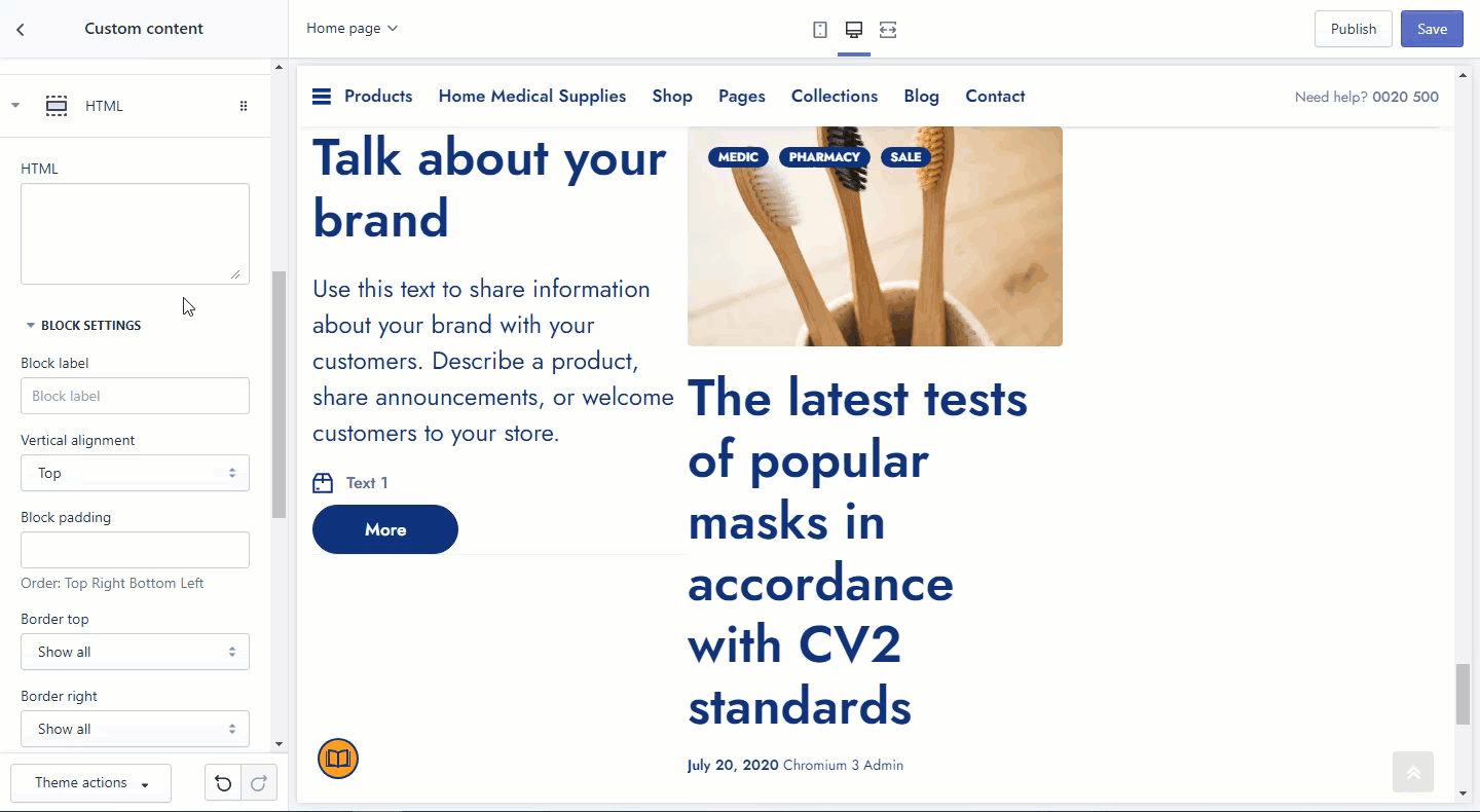 When you need to create a custom section for a specific usage, the Custom Content section will help you with your job.