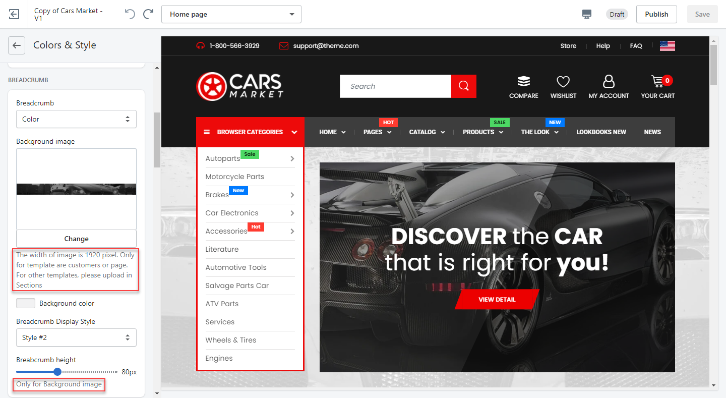 - You can follow the instruction in the settings to modify each part (using the drop-down boxes, color pickers...)