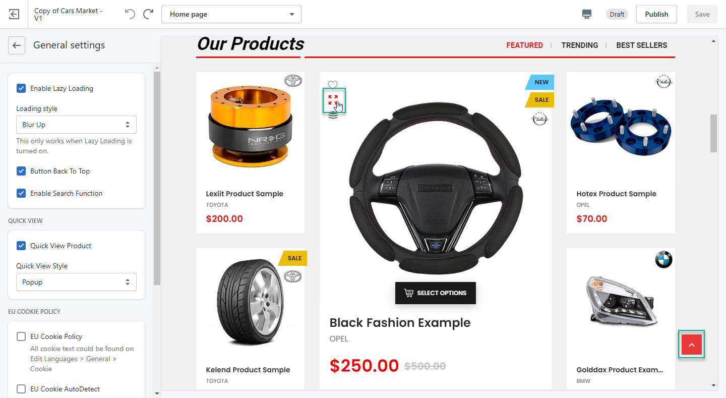 And in the Social sharing section, you can add buttons which allows users to share your product.