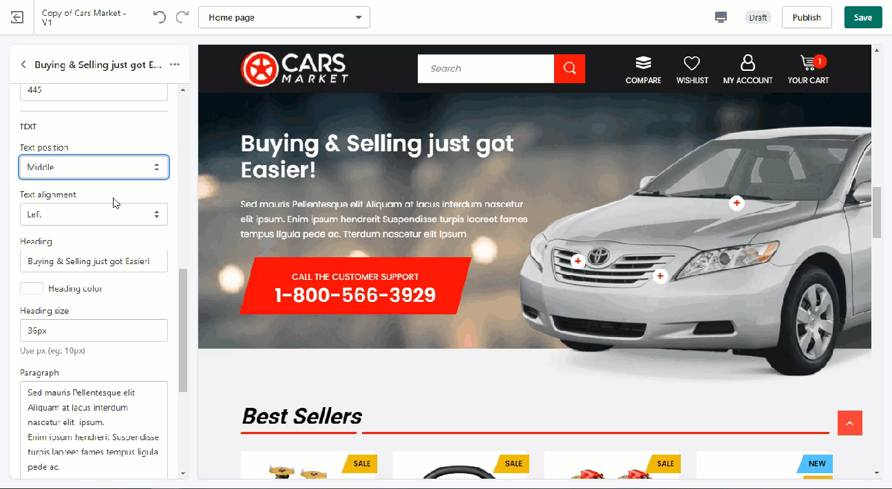 - Firstly, write down your content in Heading, Paragraph and button form then you can use other fields to start editing the texts.