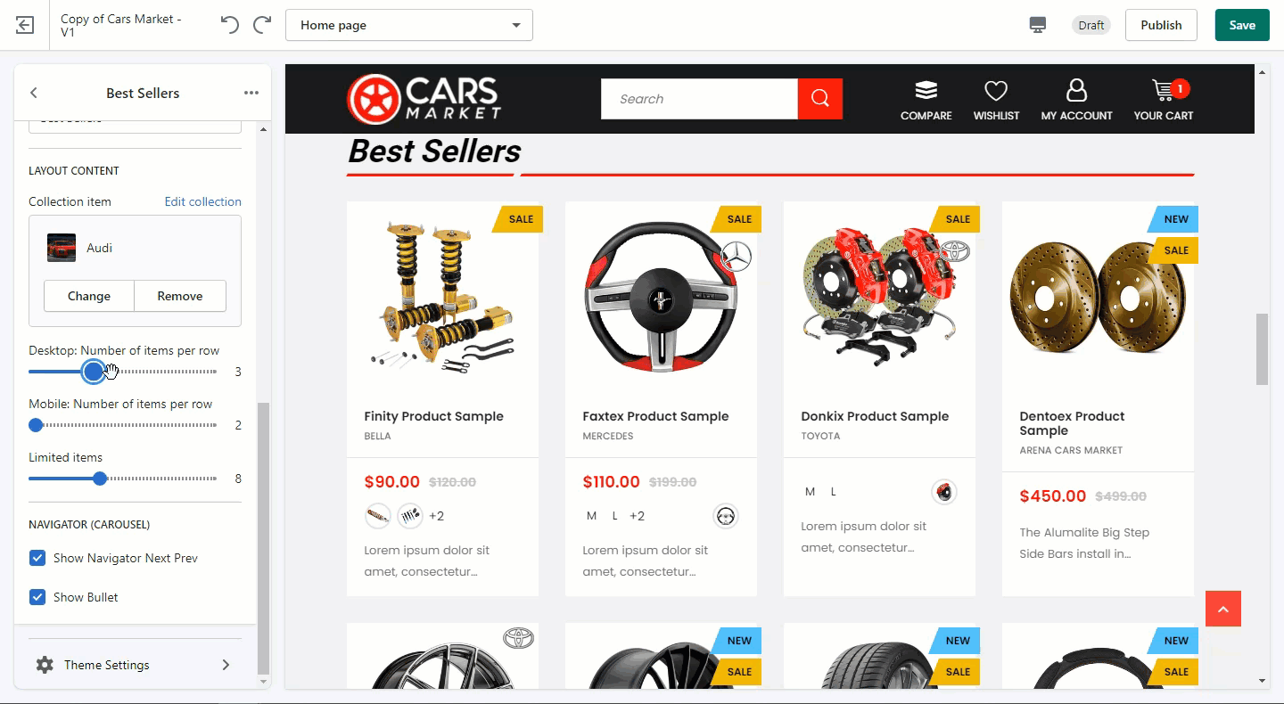 - About product cards displaying style, you can switch between Row type or Carousel, due to your preference.