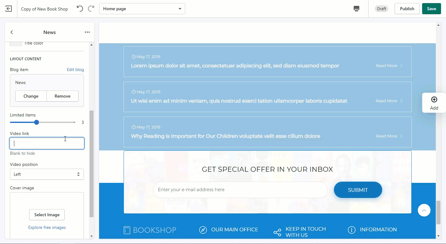 To create a list of blogs and video in once, click Add content and choose Blog V2 then start customizing.