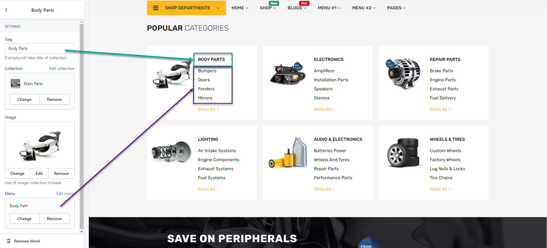 - Title: Insert a title name for a collection, Eg: Body Parts, Electronics, etc. (If empty, it will take title of collection).