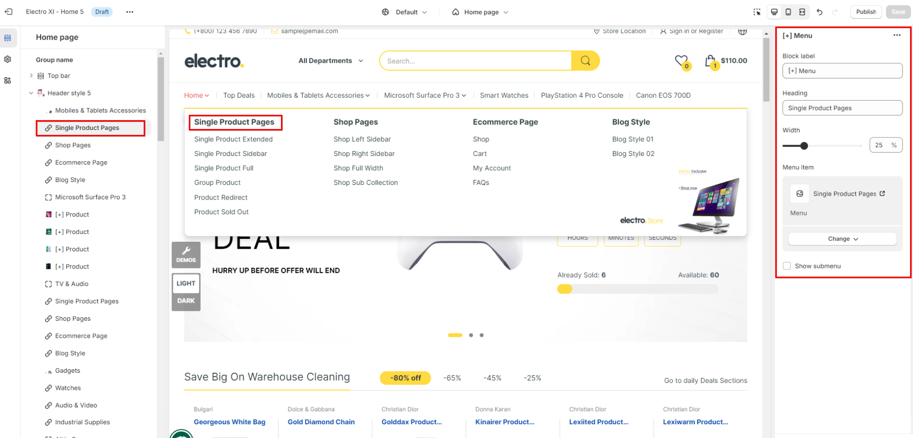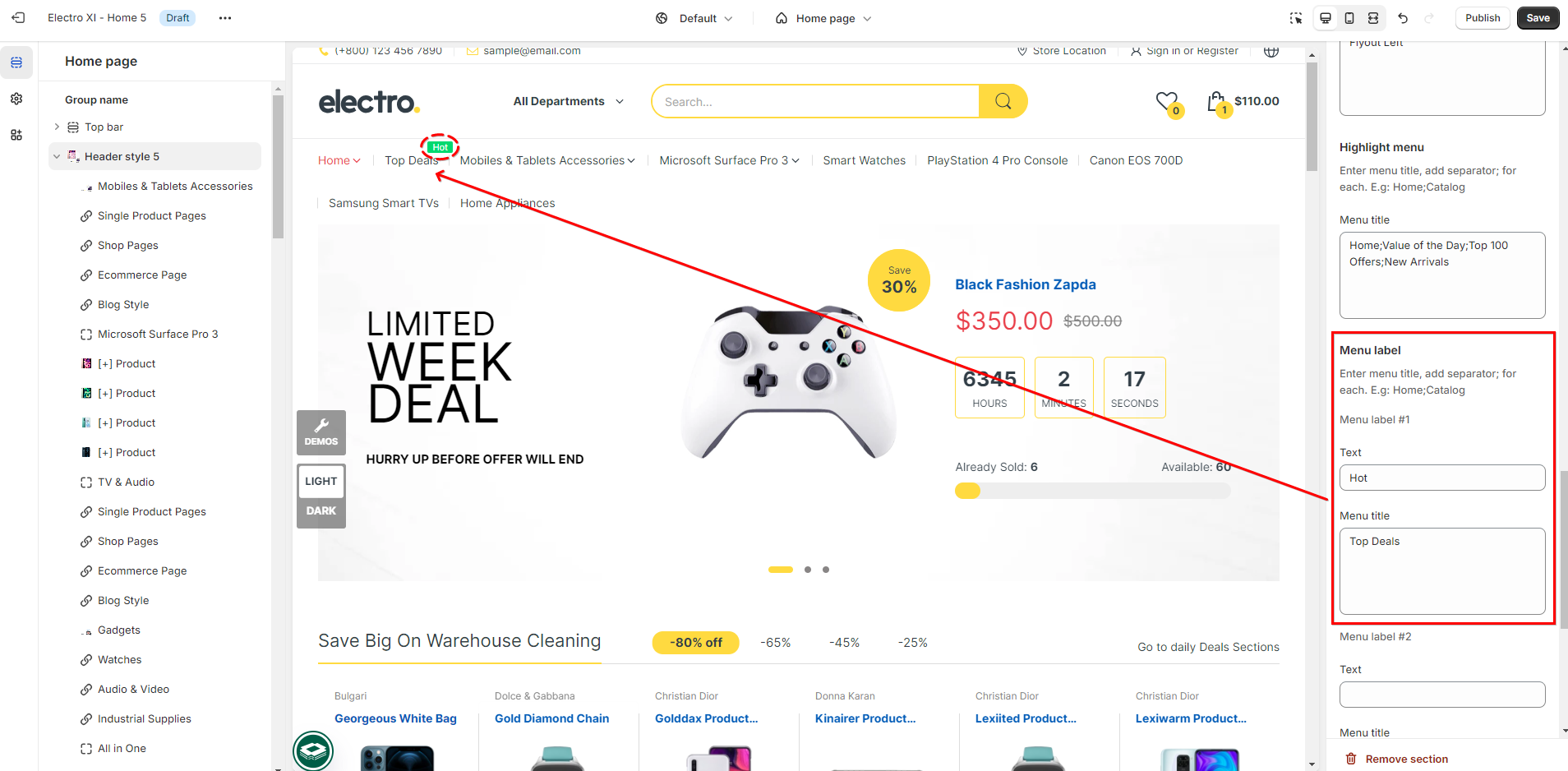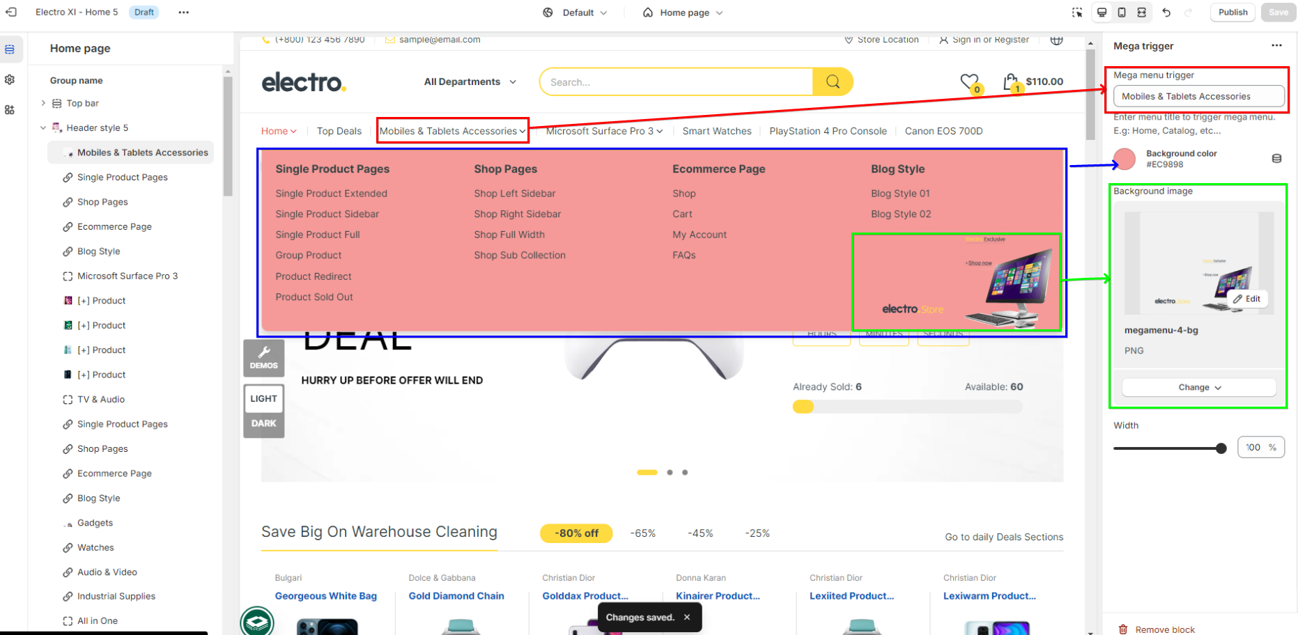 - Please note that the name of Menu item entered in Mega menu trigger field must match the name of one of the first-level menu items.