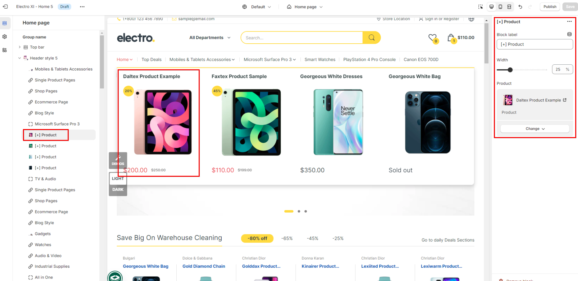 When you want to enable the navigation, you must add the block "mega trigger" first and then leave other blocks under it [+menu], [+banner], [product]...