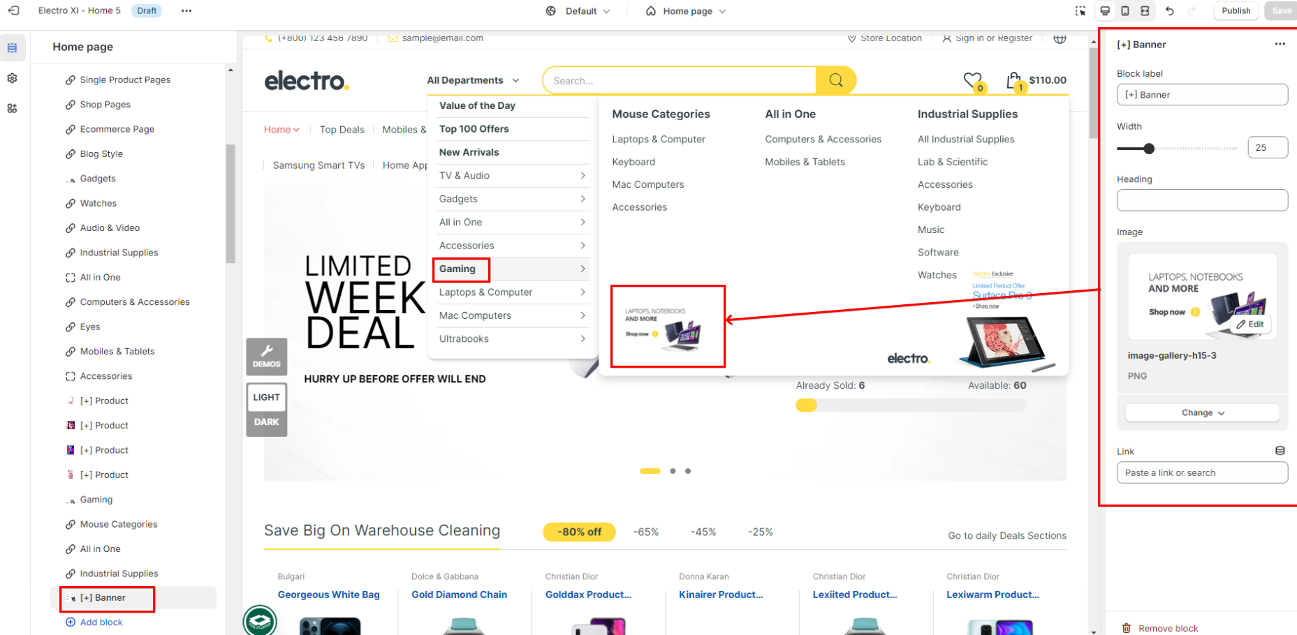 - Link: paste a external link or search a destination from the system to attach it to the banner