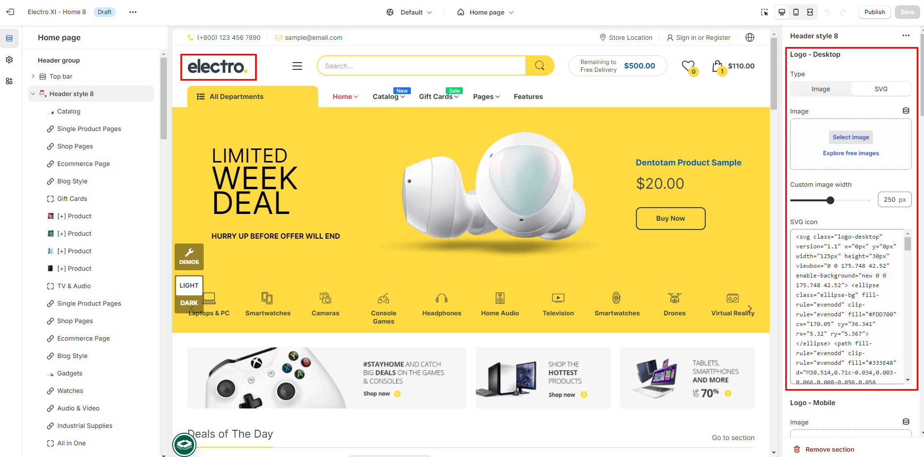 Type: choose a type to input the logo (SVG/ Image)