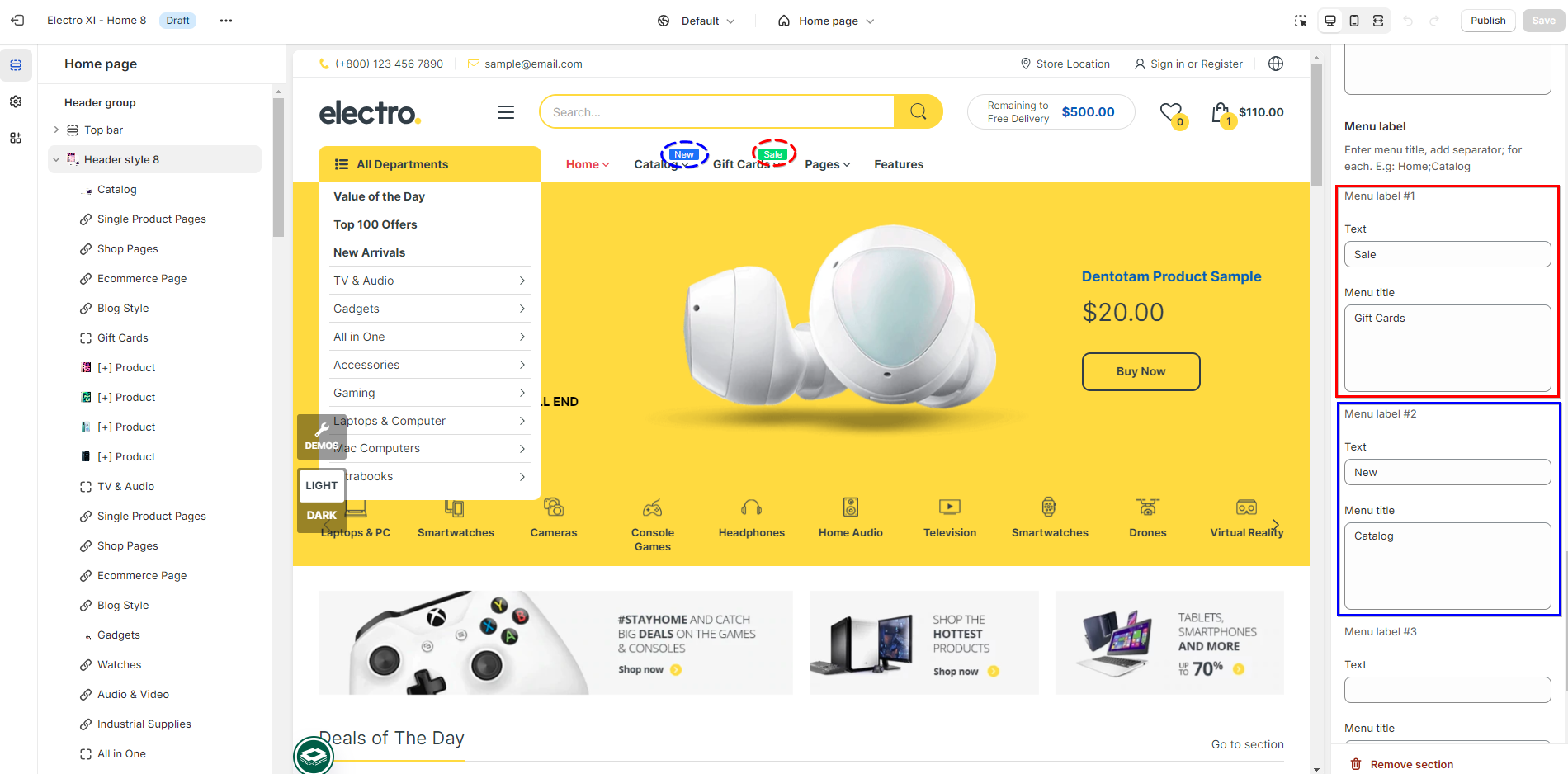 - To learn how to create menu in multiple levels (dropdown), please check out the official Shopify documentation