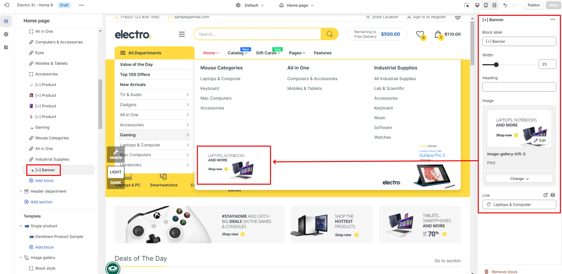 - Link: paste a external link or search a destination from the system to attach it to the banner